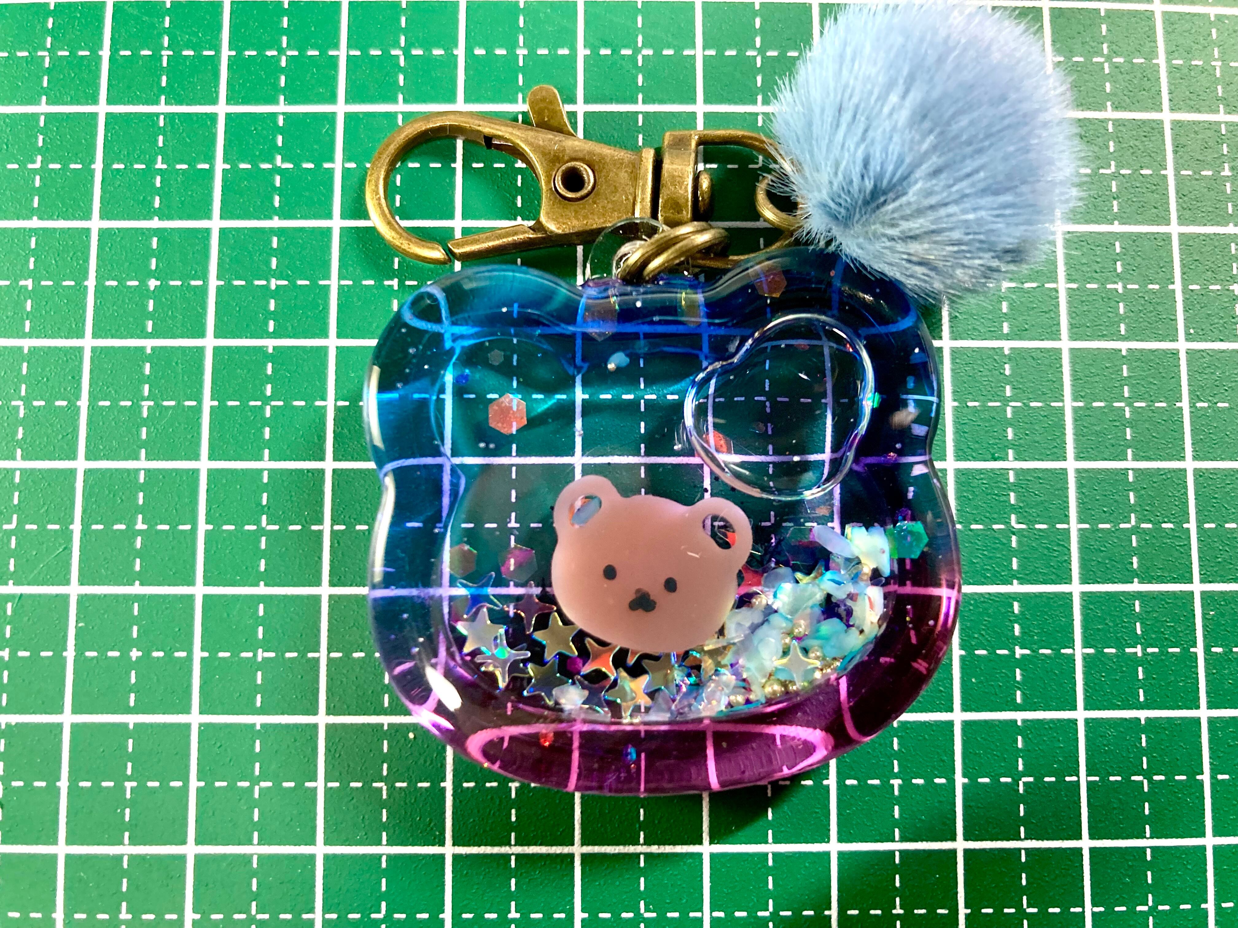 あなたの鍵やバッグに心温まる可愛さをプラスする、夜景くまちゃんのシェイカーキーホルダーはいかがでしょうか?このキーホルダーは、幻想的な夜景を背景にした愛らしいくまちゃんデザインと、オイル入りのレジンによって夢のような美しさを実現しています。日常使いにちょっとした楽しみを加えるアイテムとして、大切な方へのプレゼントにもぴったりな商品です!
